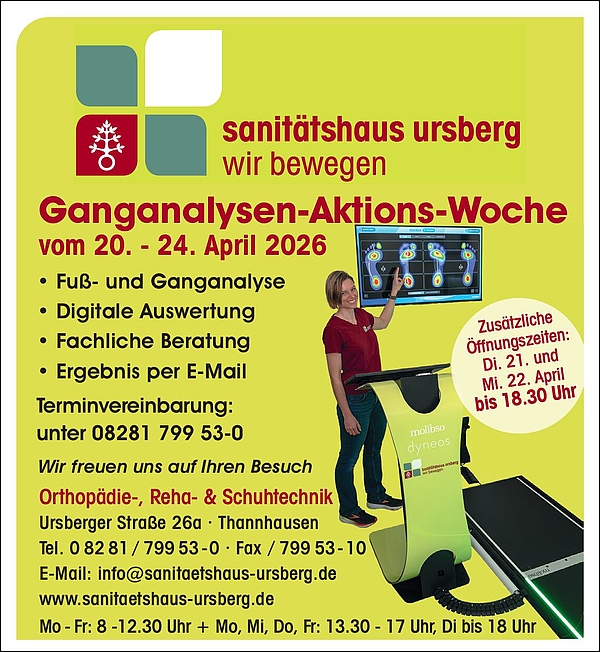 Zu allen Fragen rund um „Gesundheit und Wohlbefinden“ finden Sie im Sanitätshaus Ursberg einen kompetenten Partner für Ihren persönlichen Bedarf. Unser modernes Dienstleistungsunternehmen bietet Ihnen Beratung, individuelle Anpassung, Verkauf, Wartung und Reparatur sämtlicher Hilfsmittel der Orthopädie-, Reha- und Schuhtechnik aus einer Hand. Unser Einzugsgebiet umfasst den Landkreis Günzburg und die angrenzenden Landkreise. Kundenzufriedenheit und Servicequalität stehen für uns an oberster Stelle. Jede Versorgung wird individuell unter Berücksichtigung der Wünsche und Bedürfnisse des Kunden sowie seines häuslichen Umfeldes geplant und umgesetzt. Um den genauen Bedarf zu ermitteln, finden selbstverständlich auch Hausbesuche bei unseren Kunden statt. WIR - das Sanitätshaus Ursberg - bieten Ihnen ein umfangreiches Sortiment an Waren und Dienstleistungen.